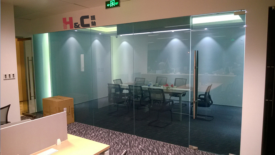 地點:廣州市天河區(qū) 應(yīng)用:5+5mm灰玻智能調(diào)光玻璃辦公室隔斷