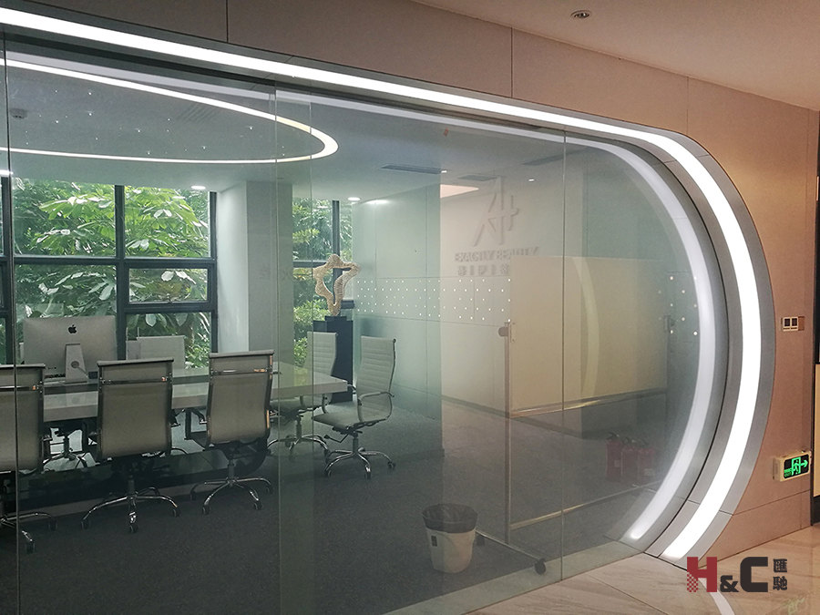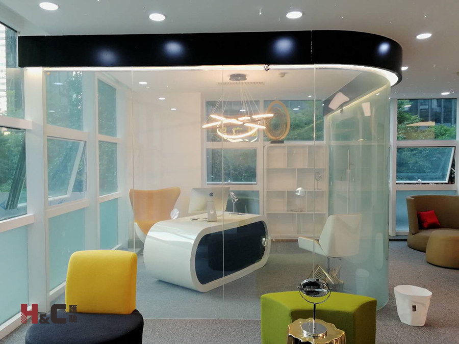 應用:調光玻璃辦公室隔斷。具體為普通接待室、VIP接待室、會議室等。