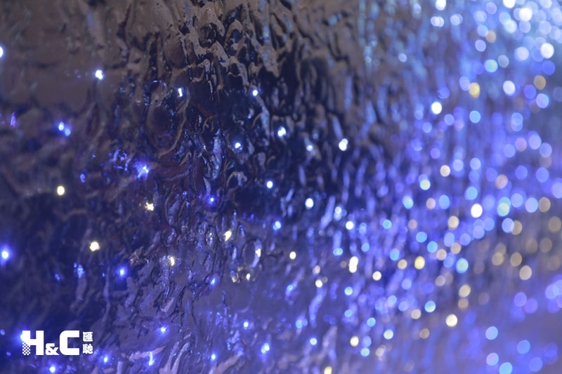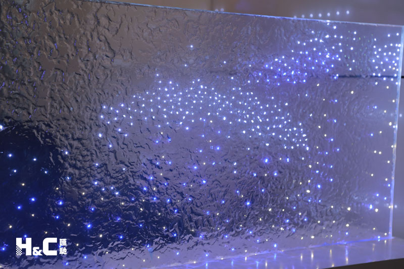以往大家普遍認為LED發(fā)光玻璃只能由兩片平整的玻璃制成,而這一次,我們使用的是表面不平整的熱熔玻璃,將LED燈嵌入玻璃中。
