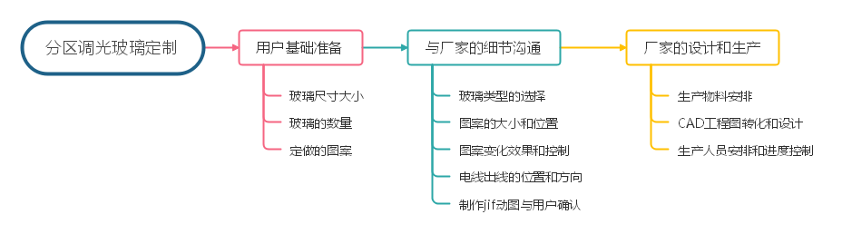 如果此前沒有接觸過調光玻璃,建議先了解調光玻璃的結構和原理,對它有基本的了解,否則難以進行分區調光玻璃的定制溝通。溝通過程中細節較多,所以需要和專人對接以及多次溝通。