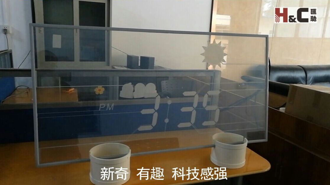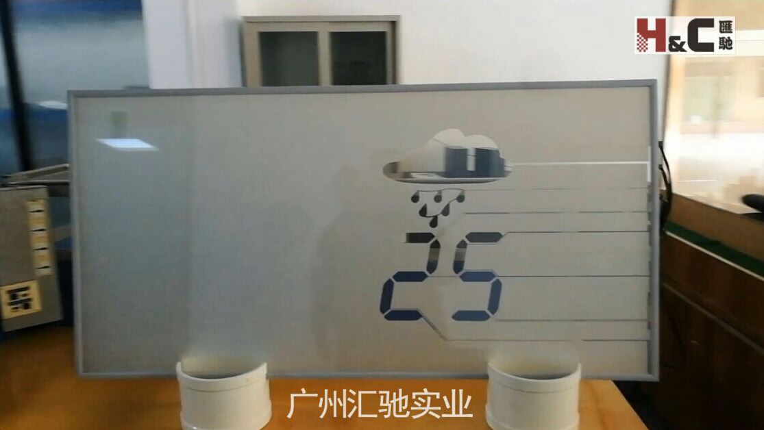此次展會,匯馳實業(yè)將主要展出分區(qū)調(diào)光玻璃的獨特效果和應(yīng)用,讓您顛覆對玻璃的印象和看法。以下圖片是分區(qū)調(diào)光玻璃做成的天氣時鐘,為此次展出的重點產(chǎn)品之一。更多產(chǎn)品細節(jié),請移步到我們的展位E7-700了解吧!精彩不容錯過,期待您的到來。