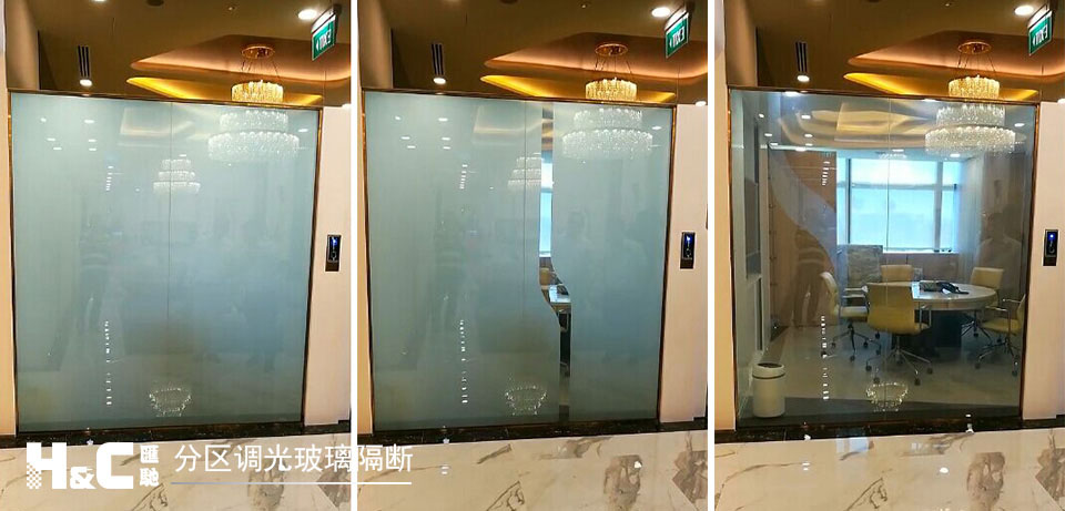分區調光玻璃既能像普通調光玻璃一樣調節一整片玻璃的透明或霧化效果,還能調節玻璃上顯示的透明或霧化圖案,這正是它的魅力所在。
